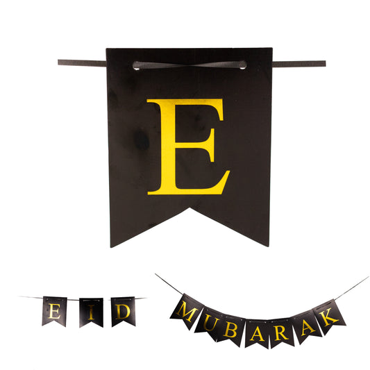Eid Mubarak Gold Lettering Bunting - Black and Gold