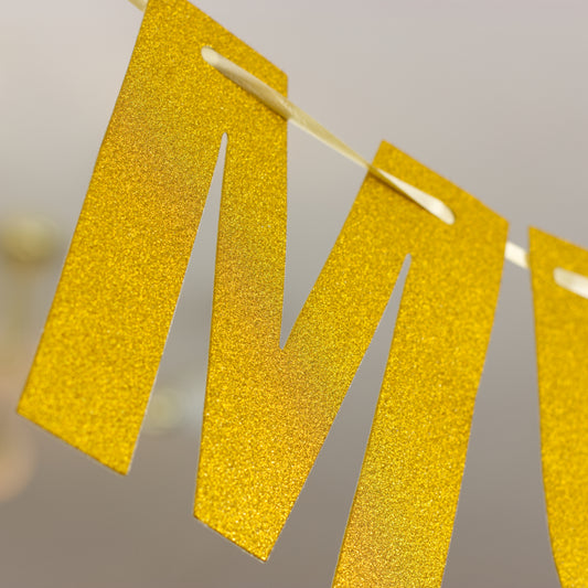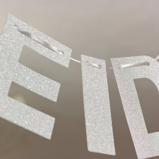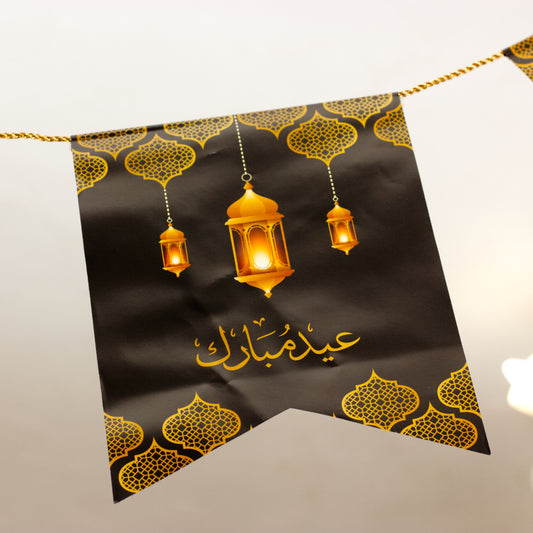 Eid Mubarak Gold Lettering Bunting - White and Gold