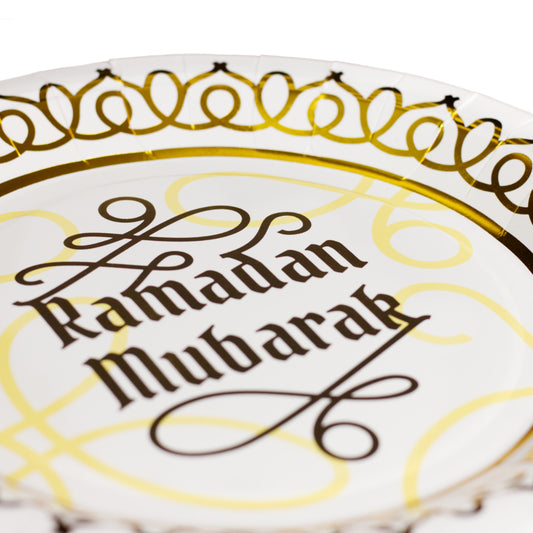 Ramadan Classic White & Gold Plate and Cup Set - 10pk
