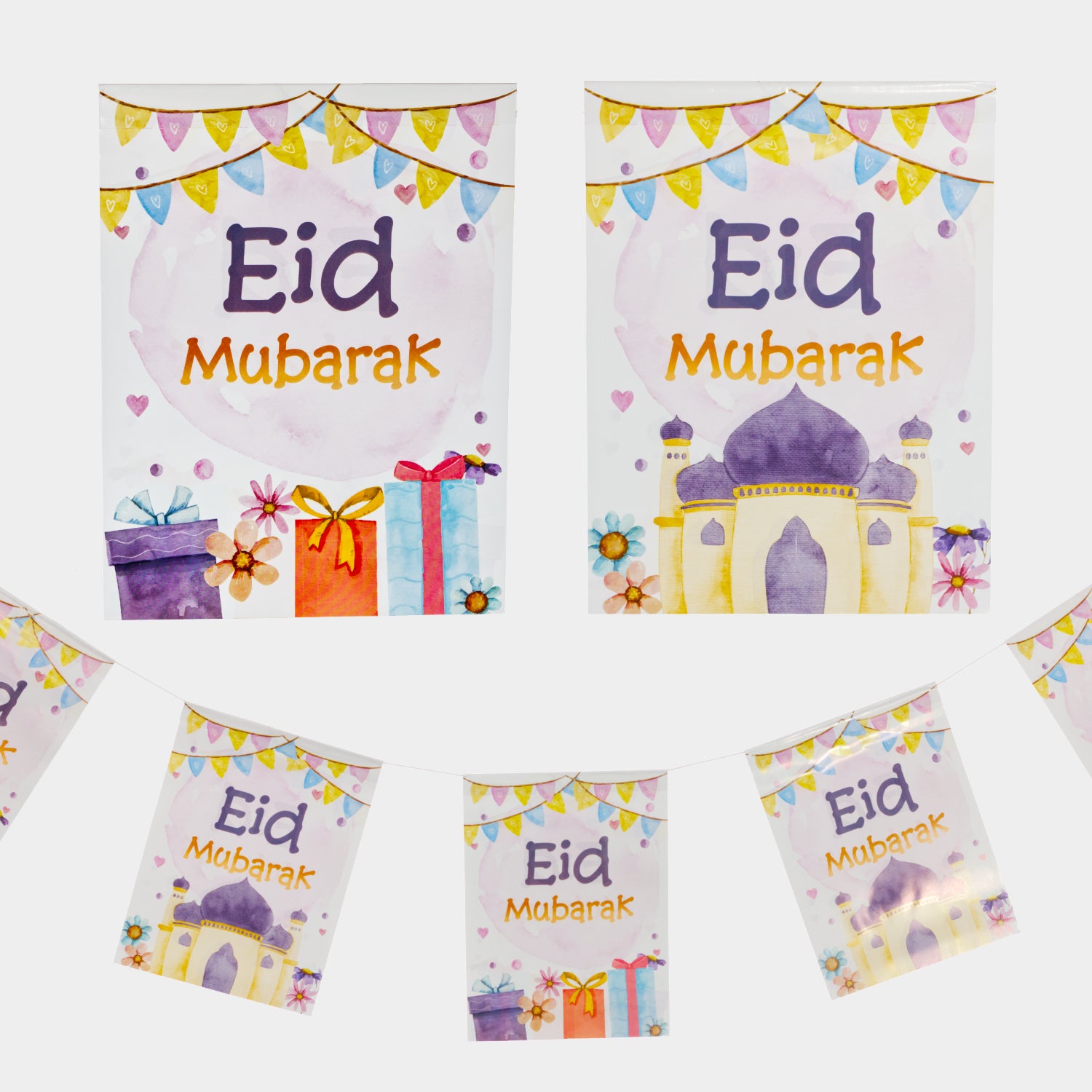 Beautiful Eid bunting in a beautiful purple gifts and pastel design.