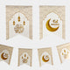 White and Gold banner with Crescents & Lanterns.