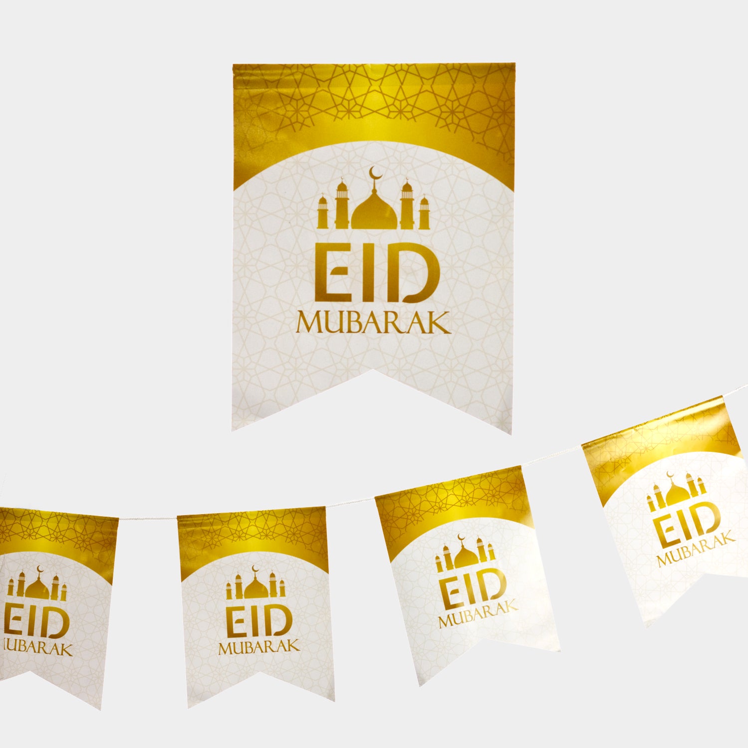 Eid Mubarak Flags - White & Gold Masjid