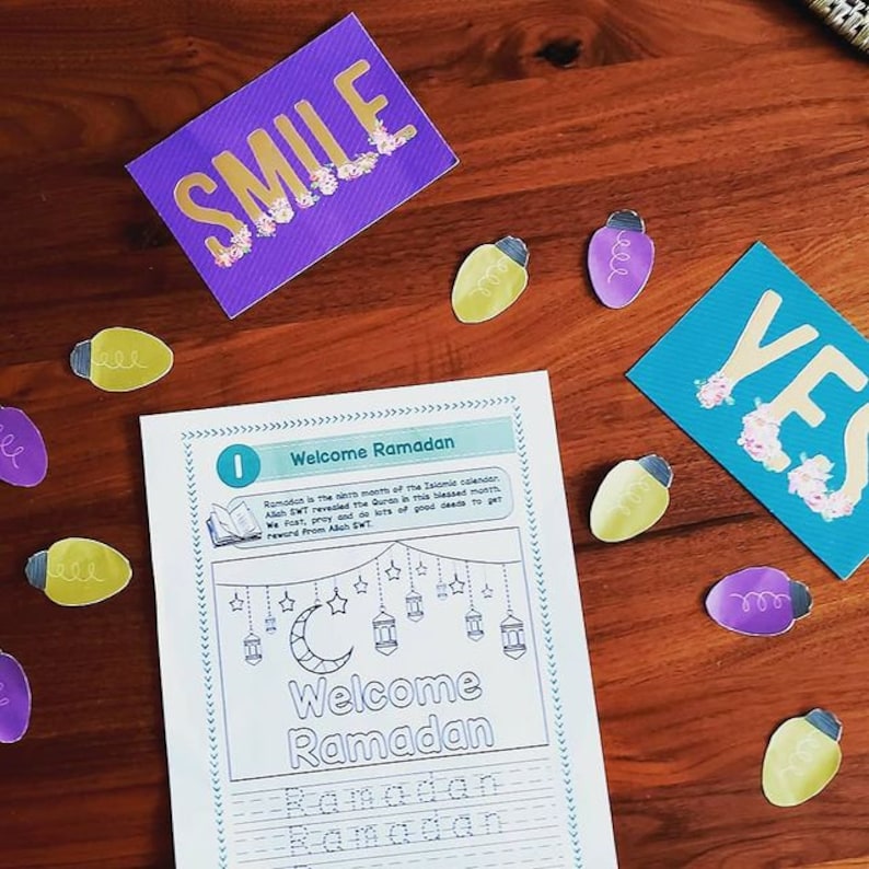 Lots of activities such as: puzzles, mazes, crafts and much more. A Gratitude Jar, Colourful Kindness Calendar and Ibadah Tracker will help them stay in the spirit of Ramadan. Laylatul Qadr activities to help them learn all about the special blessed night. Crafts include Ramadan lights, Eid Banners, Eid cards and more.