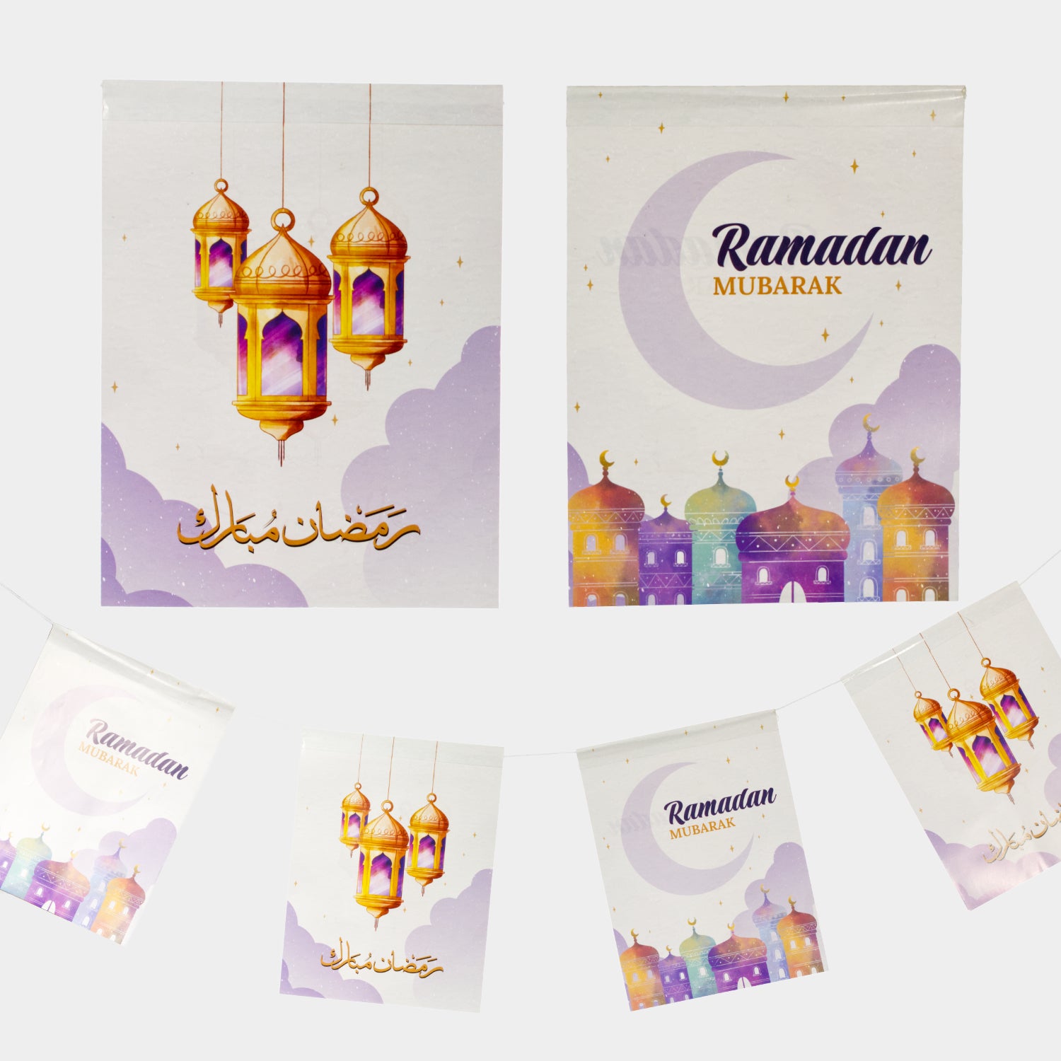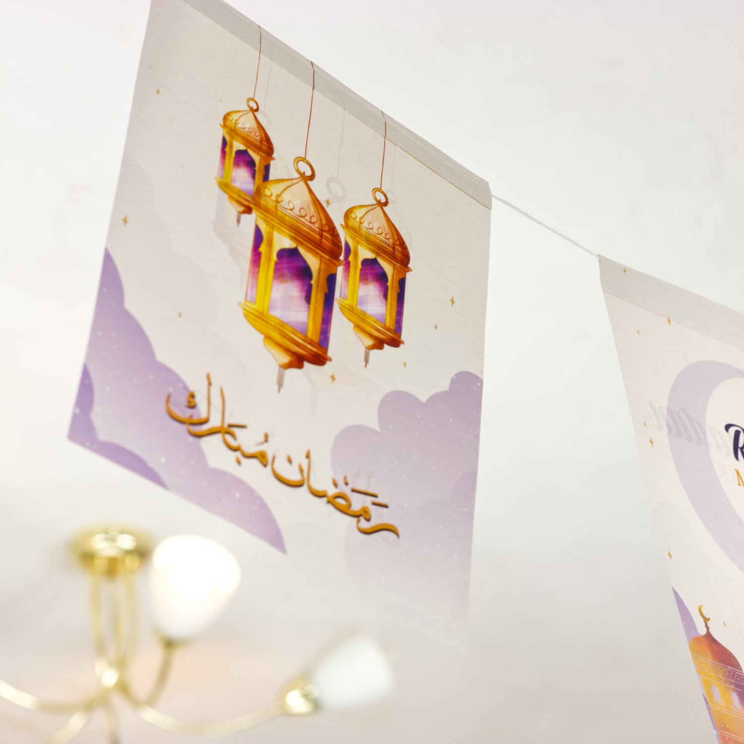 Beautiful Ramadan bunting in a beautiful purple Masjid and lantern design.