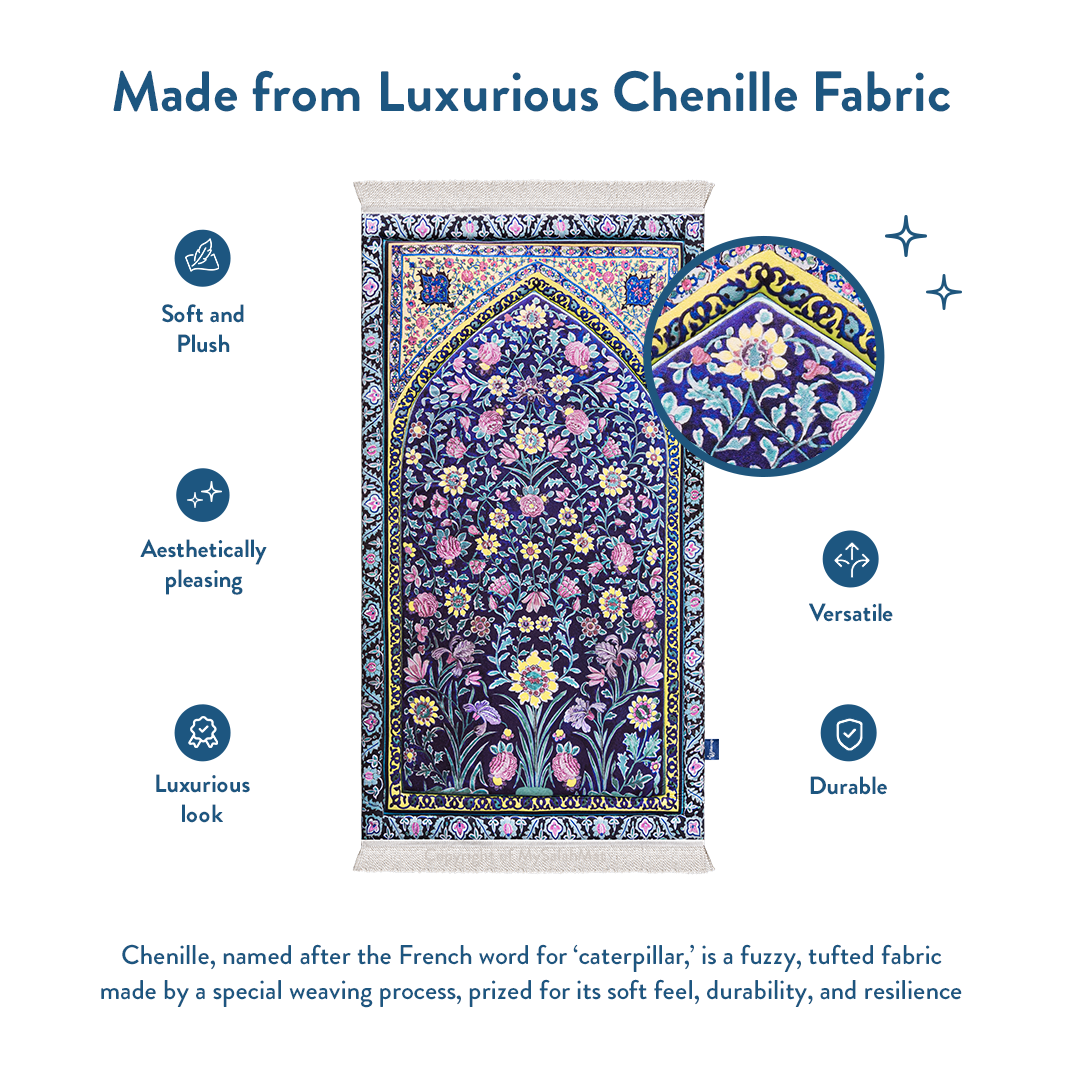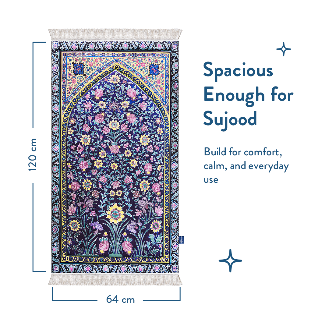 Indulge in luxury and elegance with our Urban Rugs UK's hand-sewn prayer mat, featuring a stunning Royal Blossoms design. Inspired by classic Persian floral motifs, this beautifully detailed modern prayer mat blends rich colours with delicate blossoms, creating a serene and sophisticated prayer experience.
